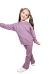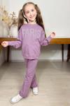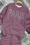 Kız Çocuk Kristal Taş Paris Yazılı İspanyol Paça Mor Eşofman Takım