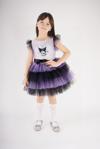 Minik prensesler için sevimlilik ve şıklığı bir araya getiren bu özel elbise, Kuromi temasıyla göz kamaştırıyor! Üst kısmında yer alan lisanslı Kuromi karakter baskısı, pembe ve mor tonlarının uyumuyla birleşerek çocukların hayal dünyasına hitap eder. Alt kısmındaki kabarık tül tütü etek ise dans ederken ya da doğum günü partilerinde hareket özgürlüğü ve masalsı bir görünüm sunar.