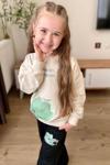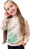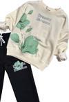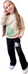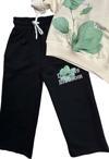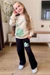 Kız Çocuk Lale Baskılı Kazak Yazı Detaylı Alt Eşofman Yeşil Eşofman Takım