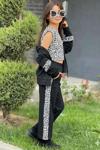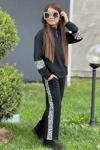 Kız Çocuk Leopar Baskılı Kolsuz Badi Leopar Şerit Detaylı Ceket Siyah Eşofman Takım