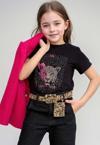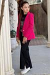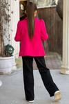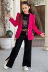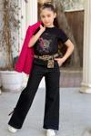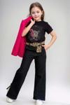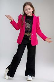 Riccotarz Kız Çocuk Leopar Yazı ve Digital Baskılı Tişört Bol Kesim Pantolon Fuşya Blazer Ceket Alt Üst Takım