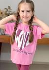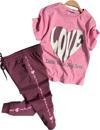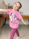 Kız Çocuk Love Kalp Baskılı T-Shirt Şerit Yazı Detaylı Pembe Eşofman Takım