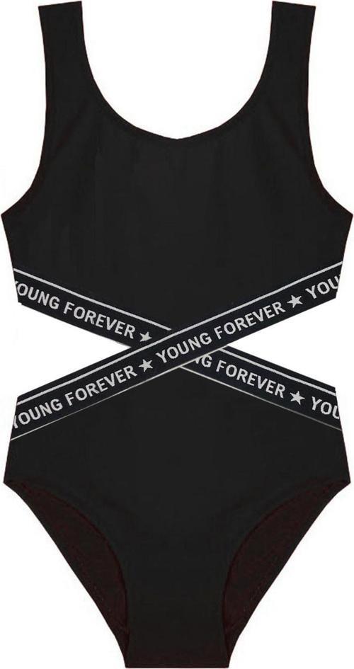 - Esnek kumaşı sayesinde hareket özgürlüğü sunan kalın askılı mayokini modeli, kız çocukların suda, plajda veya havuz kenarında geçirdiği zamanların konforunu artırıyor. Siyah şerit üzerindeki yazı baskıları, tasarımda öne çıkıyor.