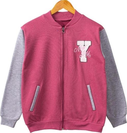 Kız Çocuk Önü Arkası Y Nakışlı New York Yazı Desenli Cepli Fermuar Kapamalı Fuşya Renk Kolej Hırka