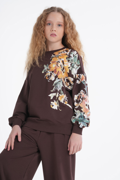 Minik prensesinizin gardırobuna yılın her döneminde giyebileceği, hem şık hem de inanılmaz rahat bir parça eklemeye hazır mısınız? Göz alıcı büyük çiçek desenleri ve yumuşacık dokusuyla bu oversize eşofman takımı, kızınızın yeni favorisi olacak. Kahverengi, Krem ve Siyah olmak üzere üç harika renk seçeneğiyle sunulan bu model, her tarza ve zevke hitap ediyor.