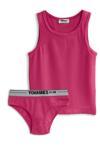 İki parçadan oluşan set, hem slip külot hem de atlet içerir