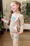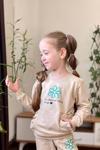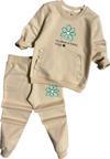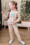 Kız Çocuk Papatya Baskılı ve Fırfır Cep Detaylı Sweat Alt Eşofman Krem Eşofman Takım