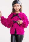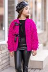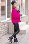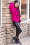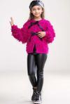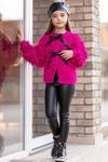Riccotarz Kız Çocuk Sıfır Yaka Penye Kazak Yüksek Bel Deri Tayt Fuşya Kürk Detaylı Triko Ceket Alt Üst Takım