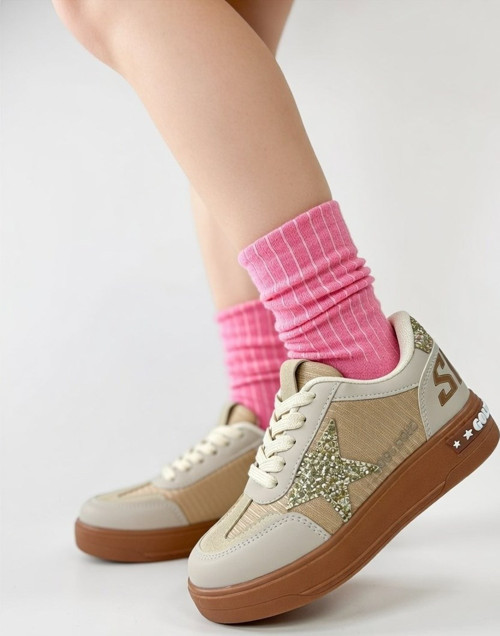 Nstil Kız Çocuk Simli Yıldız Detaylı Sneaker Bağcıklı Cırtlı Günlük Spor Ayakkabı 5006