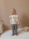 Bu şık ve modern takım, minik kızınızın stilini bir üst seviyeye taşıyacak! Üst kısmında “Stay Chic” yazısı bulunan fırfır detaylı sweatshirt, zarif tasarımıyla öne çıkarken; alt parça olan zebra desenli geniş paça pantolon, modayı yakından takip eden annelerin favorisi olacak!