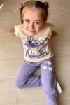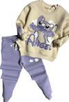 Kız Çocuk Stitch Karakter ve Angel Yazı Baskılı Lila Eşofman Takım