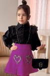 Kız Çocuk Taş İşlemeli Fırfırlı Mor Etekli Takım