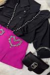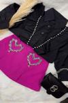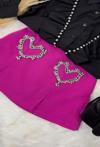 Taş ve kalp desenli, beli manşetli etek. Çanta dahildir.