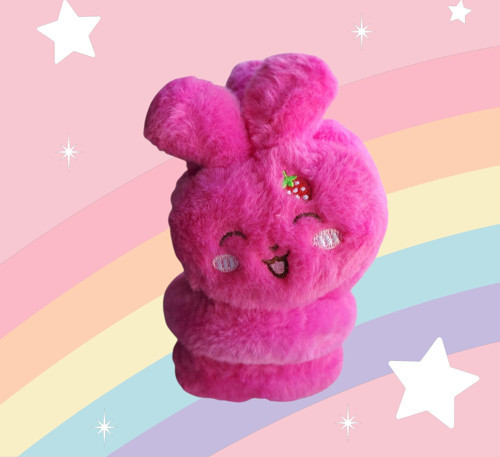 Kız Çocuk Tavşan 3D Peluş Kulaklık Fuşya