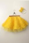 Çocuksan Baby&Kids Wear Kız Çocuk Tütü Etek Sarı Tüylü Simli Taçlı Set 23 Nisan 29 Ekim Doğum Günü Parti Kıyafeti