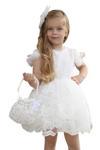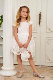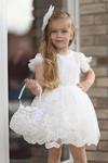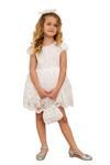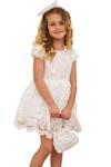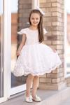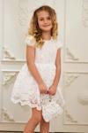 Kız Çocuk Üzeri Boydan Dantel Güpür İşlemeli Şeffaf Tüllü Sıfır Kol Beyaz Elbise