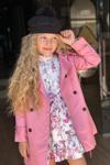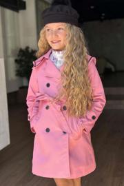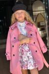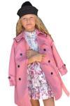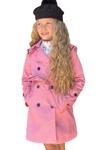 Kız Çocuk Üzeri Dantel İşlemeli Elbise Çift Cep Detaylı Kemerli Pembe Trençkot