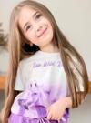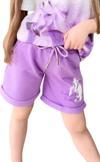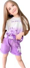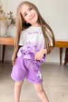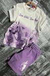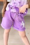 Kız Çocuk Üzeri Digital At ve Yazı Baskılı Lila Şortlu Takım