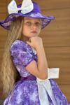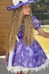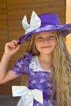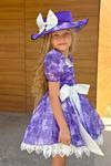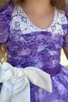 Kız Çocuk Üzeri Gül Baskılı Yakası ve Etek Ucu Dantel İşlemeli Mor Elbise