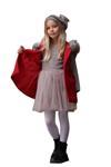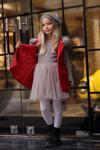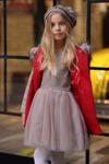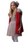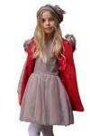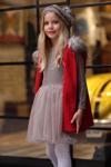 Kız Çocuk Üzeri Kare Desenli Eteği Tüllü Elbise Kürk Detaylı Kolsuz Kırmızı Kaşe