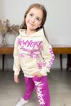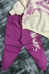 Kız Çocuk Üzeri New York Yazı Detaylı Bilekleri Manşetli Sweatshirt Mor Eşofman Takım