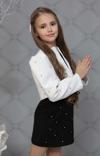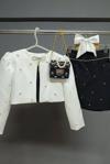 Kız Çocuk Üzeri Taş İşlemeli Etek Askılı Penye Bluz ve Beyaz Blazer Ceket Etekli Takım