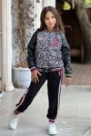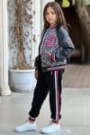 Kız Çocuk V Cool Yazı Baskılı Sweatshirt Zebra ve Pembe Şerit Detaylı Deri Eşofman Takım