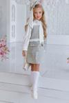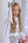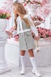 Kız Çocuk Yakası Bağlama Detaylı Kolları Şifon Beli Fırfırlı Üzeri Şanel Kumaş Yeşil Elbise
