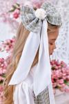 Riccotarz Kız Çocuk Yakası Bağlama Detaylı Kolları Şifon Beli Fırfırlı Üzeri Şanel Kumaş Yeşil Elbise