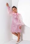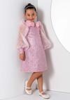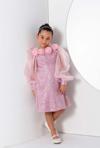 Riccotarz Kız Çocuk Yakası Boydan Gül Broş Detaylı Bilekleri ve Üzeri Pullu Karpuz Kollu Pembe Elbise