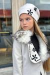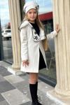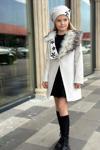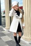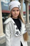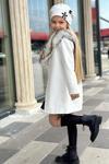 Kız Çocuk Yakası Kürk ve Yonca Detaylı Etekli Ekru Kaşe