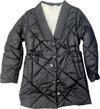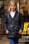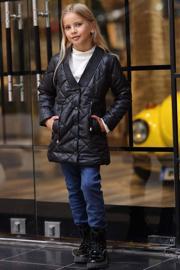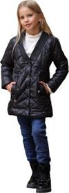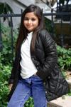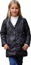 Kız Çocuk Yakası Şerit ve Üzeri Kare Dikiş Detaylı Cepli Çıtçıt Düğme Şişme Siyah Mont