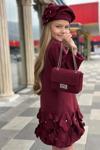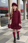 Kız Çocuk Yakası Taş ve Yonca Detaylı Çıtçıt Düğmeli Bordo Kaşe