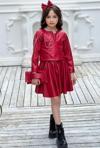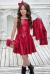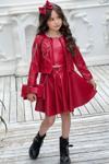 Kız Çocuk Zincir Detaylı Ceket Beli Manşetli Etek ve Croplu Kırmızı Etekli Takım