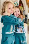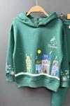 Kız Erkek Çocuk Kar Tanesi ve Bina Digital Baskılı Yazı Detaylı Christmas Yeşil Eşofman Takım