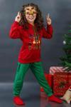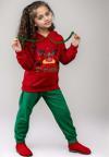 Kız Erkek Merry Christmas ve Geyik Baskılı Yeni Yıl Kırmızı Eşofman Takım