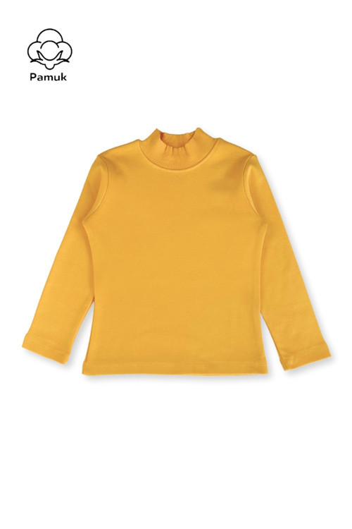 Kız Erkek Unisex Çocuk Sarı Renk Mevsimlik Kışlık Yarım Boğazlı Uzun Kollu Badi