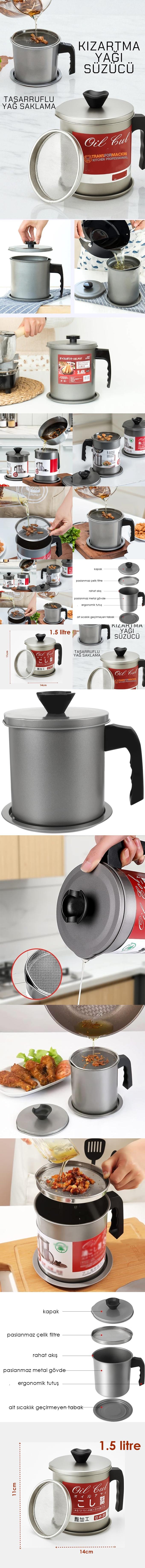 1,5 lt kapasitesi, erimiş yağınızı hızlıca süzüp depolamanız için ideal büyüklüğü sağlar.