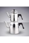 Alüminyum çaydanlık, 2,5 litre alt hazne ve 1 litre üst hazne kapasitesi ile pratik kullanım sunar.