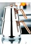- Zarif gold detaylarıyla süslenmiş, şıklığı mutfaklarınıza taşıyan çelik çaydanlık.