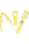 Mutfakta pratiklik sağlayan çok amaçlı 3’lü set içerisinde fındık kıracağı, sebze/meyve soyacağı ve şişe açacağı bulunmaktadır.
