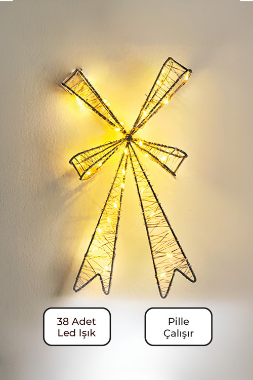Yükseklik: 25 cm Watt: 2.2 W 38 Adet Led Işık Pil Kutusu: Açma-Kapama Butonu Pil: 3 Adet AA Pil(Piller dahil değildir) Materyal: Metal Led Işık Ağırlık: 90 g Led Işık: Sarı Işık