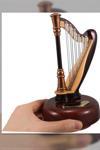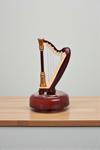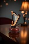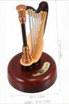 17,5 cm boyundaki bu zarif dekoratif obje, kahverengi mini arp formunda tasarlanmıştır. Plastik malzemeden üretilmiş olup, el işçiliğiyle üretilen sekiz tonlu mekanizması sayesinde huzur veren bir melodi çalar.