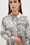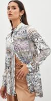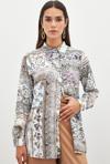Ön düğmeli kapama, düğmeli uzun kol, kalça altı boy, klasik desenli gömlek.