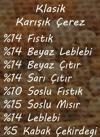 %14 Fıstık %14 Beyaz Leblebi %14 Beyaz Çıtır %14 Sarı Çıtır %10 Soslu Fıstık %15 Soslu Mısır %14 Leblebi ve %5 Kabak Çekirdeiği içeren karışık çerez paketlerini çocuklarınıza daha sağlıklı bir atıştırmalık olarak verebilirsiniz.