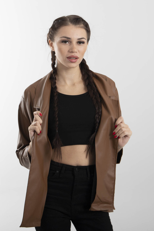 Klasik Yaka Kapamasız Deri Ceket