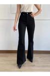 Kleshus Ganikus 90's Pamela Jeans Kadın Solmayan Siyah Yüksek Bel Likralı İspanyol Paça jean Pantolon Denim