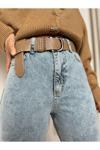 Kleshus Ganikus Jnswrld Mavi Mom Jeans Likralı Yüksek Bel Mavi Kar Yıkamalı Mom Kot