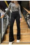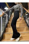 Ganikus Kadın Siyah Yüksek Bel Ispanyol Paça Jean