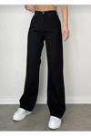 Kleshus Ganikus Kadın Yüksek Bel Solmayan Siyah Yıkama Wide Leg Likralı Palazzo Jeans Pantolon
